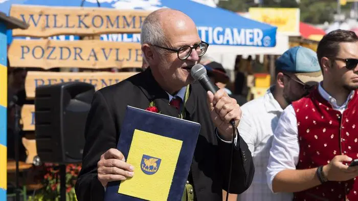 Es war ein Moment, der nichts mit den Tönen zu tun hat, die sonst bei der Eröffnung des Bleiburger Wiesenmarkts herrschen - von politischen Forderungen bis hin zu fröhlichen Gesängen. Und eigentlich hätte es eine gewöhnliche Ehrung für Arthur Ottowitz werden sollen. Der Musiker und Kulturarbeiter trägt bereits den Professor-Titel und den Landeskulturpreis. Doch die Ehrung, die er dafür erhielt, dass er heuer zum 30. Mal den Bleiburger Wiesenmarkt organisierte, wurde dann doch ein besonderer Moment. Landeshauptmann Peter Kaiser dankte Ottowitz mit einfühlsamen Worten für sein Engagement, „das er auch in den schwersten Zeiten seines Lebens an den Tag legt und das mir Respekt abringt“. Was in diesem Moment nicht ausgesprochen werden musste, war die Trauer um Ottowitz‘ Ehefrau Christine, die vor wenigen Wochen verstarb. „Es ist nicht nur eine ehrenvolle Aufgabe, sondern eine Aufgabe, die einen erfüllt, weil der Wiesenmarkt seinen eigenen Zauber hat“, meinte Ottowitz dazu - ehe ihm ein ganzes Festzelt mit stehenden Ovationen gratulierte und Mitgefühl spendete.