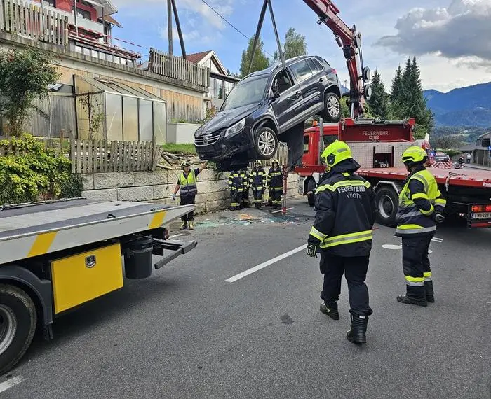 Der Wagen fuhr daraufhin durch einen dort befindlichen Holzzaun und stürzte in den darunterliegenden Garten. In weiterer Folge überschlug sich das Fahrzeug und kam schräg zu einer Mauer gelehnt auf einer weiter darunterliegenden Straße zum Stillstand.