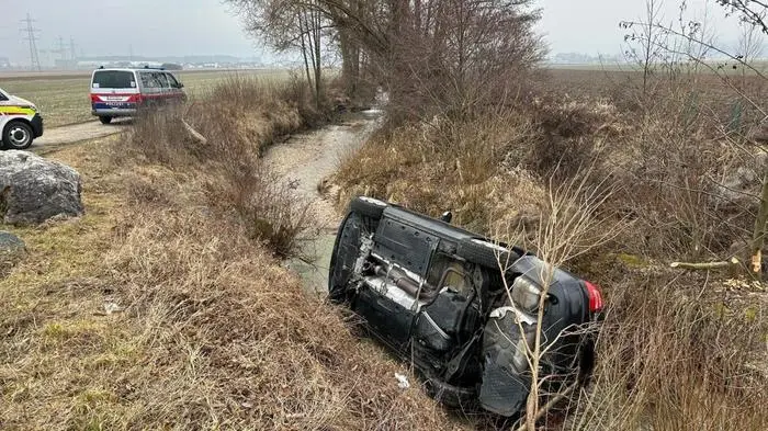 Überholendem Pkw ausgewichen: Auto überschlug sich und landete im Bach