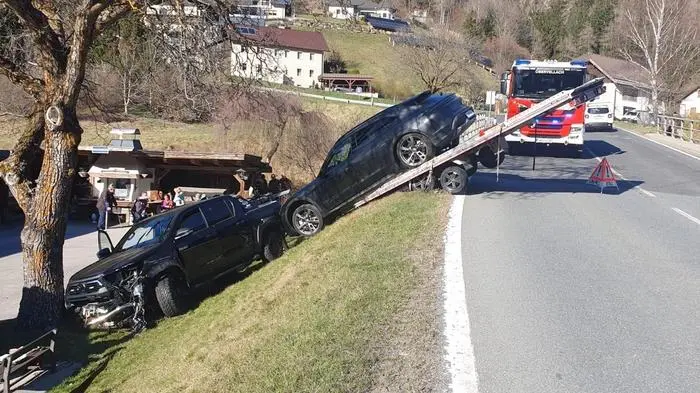 Mit einem Spezialkraftwagen samt Anhänger war ein 43-jähriger Lenker am Donnerstagnachmittag auf der B 105 von Mallnitz in Richtung Obervellach unterwegs. Auf dem Anhänger befand sich ein Sportwagen. „Nach einer mehrere Kilometer andauernden Talfahrt kam es zu Bremsproblemen“, berichtet die Polizei. Der Wagen touchierte in der Folge ein Brückengeländer, das Gespann stürzte schließlich über eine steile Böschung und kam auf einem Parkplatz zum Stillstand.