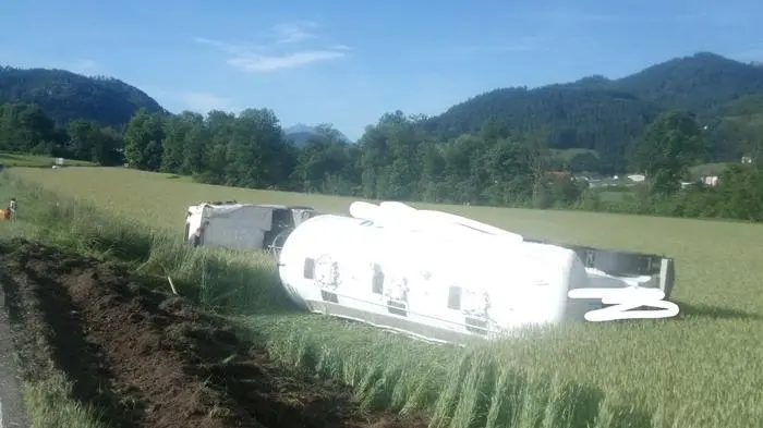 • Ein Lkw kam auf der Görtschitztal Straße in Kärnten von der Straße ab und landete in einem angrenzenden Feld.