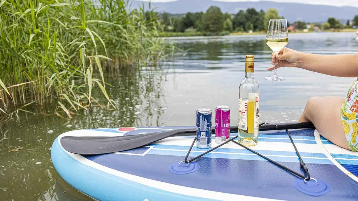 Am Wörthersee sieht man öfter Personen, die am Stand-up-Paddel-Board Alkohol trinken. Aber Vorsicht: Am SUP gilt dieselbe Promillegrenze wie im Straßenverkehr.