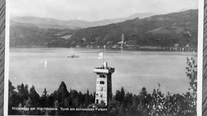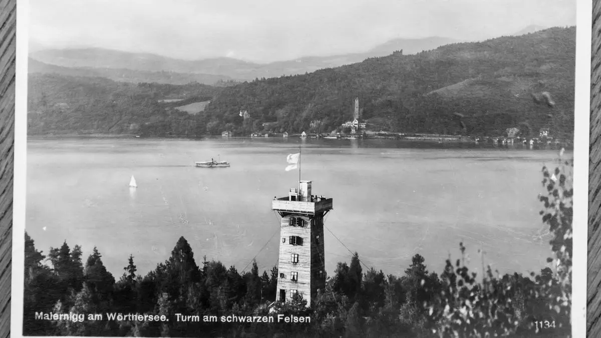 Die Reste des Fundaments sind von Moos überzogen, die Natur hat sich ihren Platz zurückerobert. Verwachsen ist jener Ort, wo einst ein mächtiger Holzturm in den Himmel ragte. „Weißer Turm am schwarzen Felsen“ ist auf einer Informationstafel zu lesen, die so manche Besucherin, so mancher Besucher in Maiernigg auf dem Weg zum Komponierhäuschen Gustav Mahlers mit Interesse studiert.