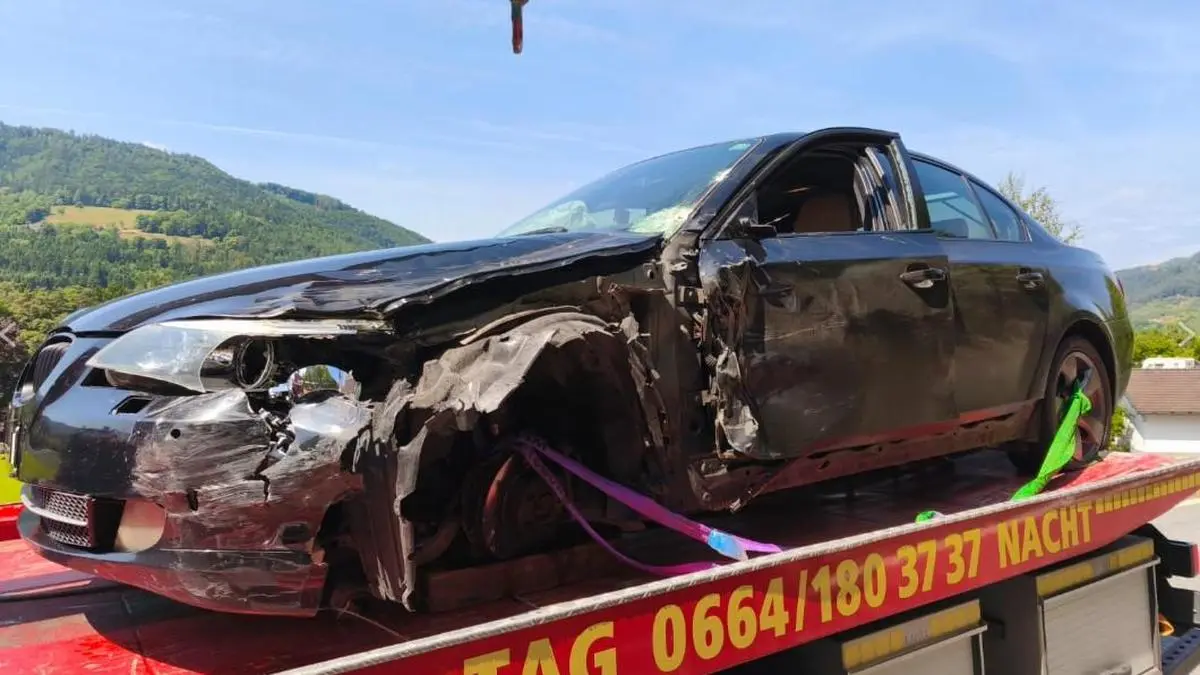 Das Unfallwrack des Kärntners, ein geplatzter Reifen wurde ausgeschlossen