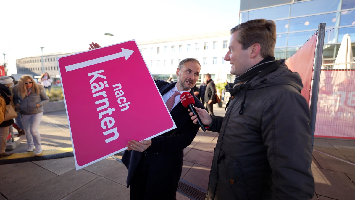 Neos-Abgeordneter Janos Juvan erklärt Michael Großschädl, wo es nach Kärnten geht