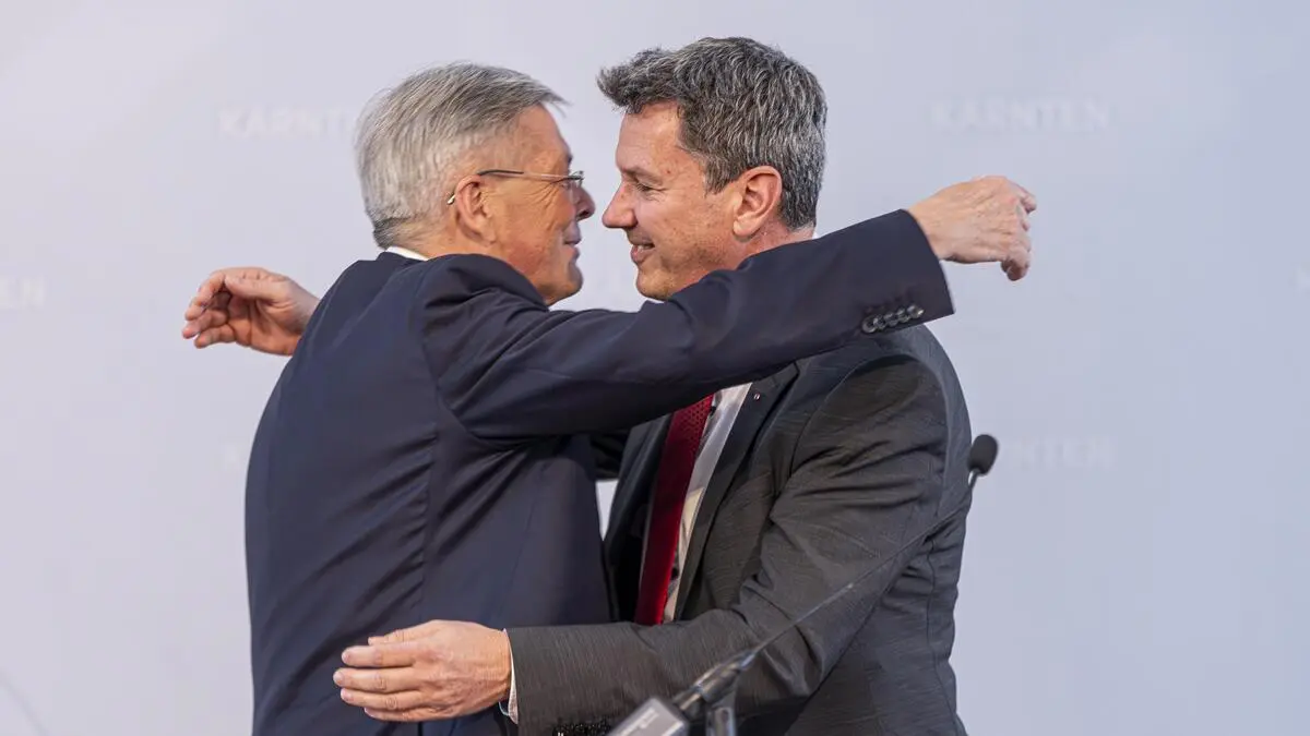 Emotional und freundschaftlich: der scheidende Landeshauptmann Peter Kaiser und sein Nachfolger Daniel Fellner