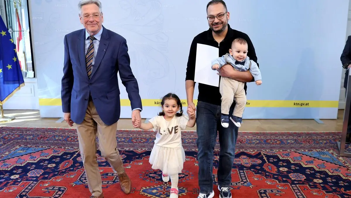 Landeshauptmann Peter Kaiser (SPÖ) hieß neue Staatsbürger in ihrer neuen Heimat willkommen. Darunter sind auch 16 Kinder. Der Großteil kommt aus Syrien.