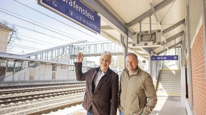 Der Grafensteiner Bürgermeister Stefan Deutschmann und der Kärntner ÖBB-Regionalmanager Reinhard Wallner freuen sich über den neuen Takt