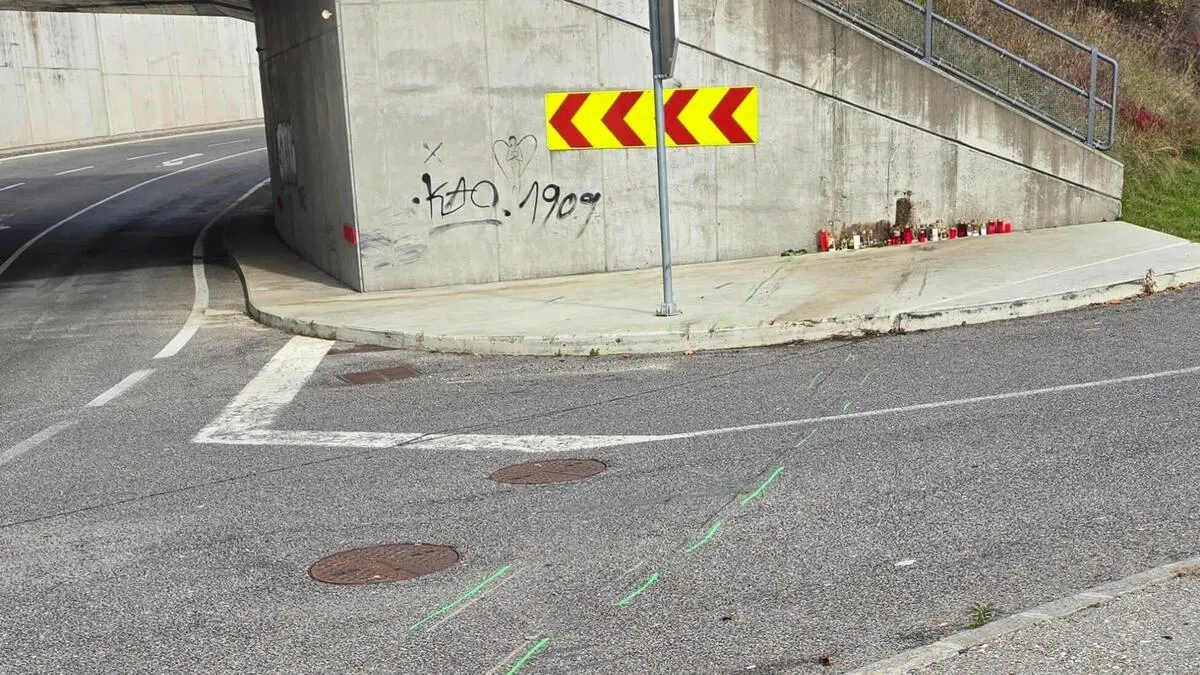 Man sieht Kerzen an einer Unfallstelle | Kerzen brennen an der Unfallstelle bei der Unterführung in Bad Saag - dort, wo eine 18-jährige Kärntnerin am Allerheiligen-Wochenende ihr Leben verlor
