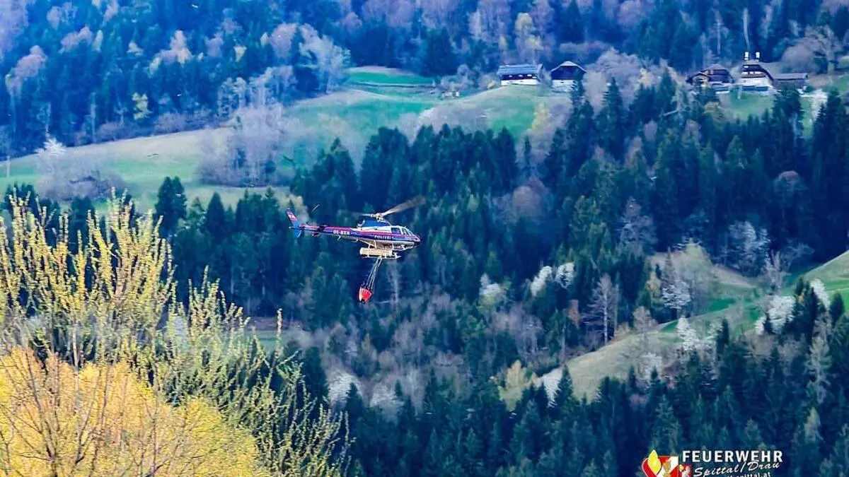 Ein Waldbrand in Oberkärnten beschäftigte am Donnerstag wieder rund 100 Feuerwehrleute. Unterstützt wurden sie vom Polizeihubschrauber Libelle aus der Luft.