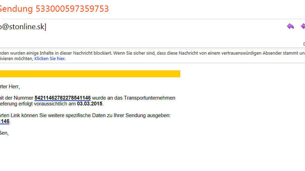 Nicht öffnen: Solche Mails sind derzeit unterwegs