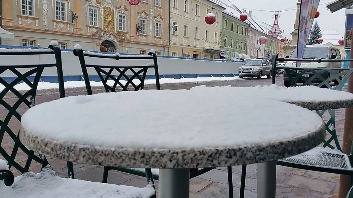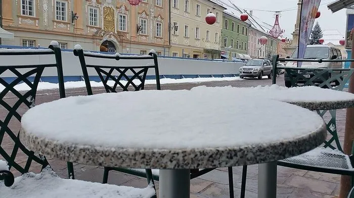 Der Winter nimmt kurz Platz auf dem Hauptplatz in St. Veit an der Glan