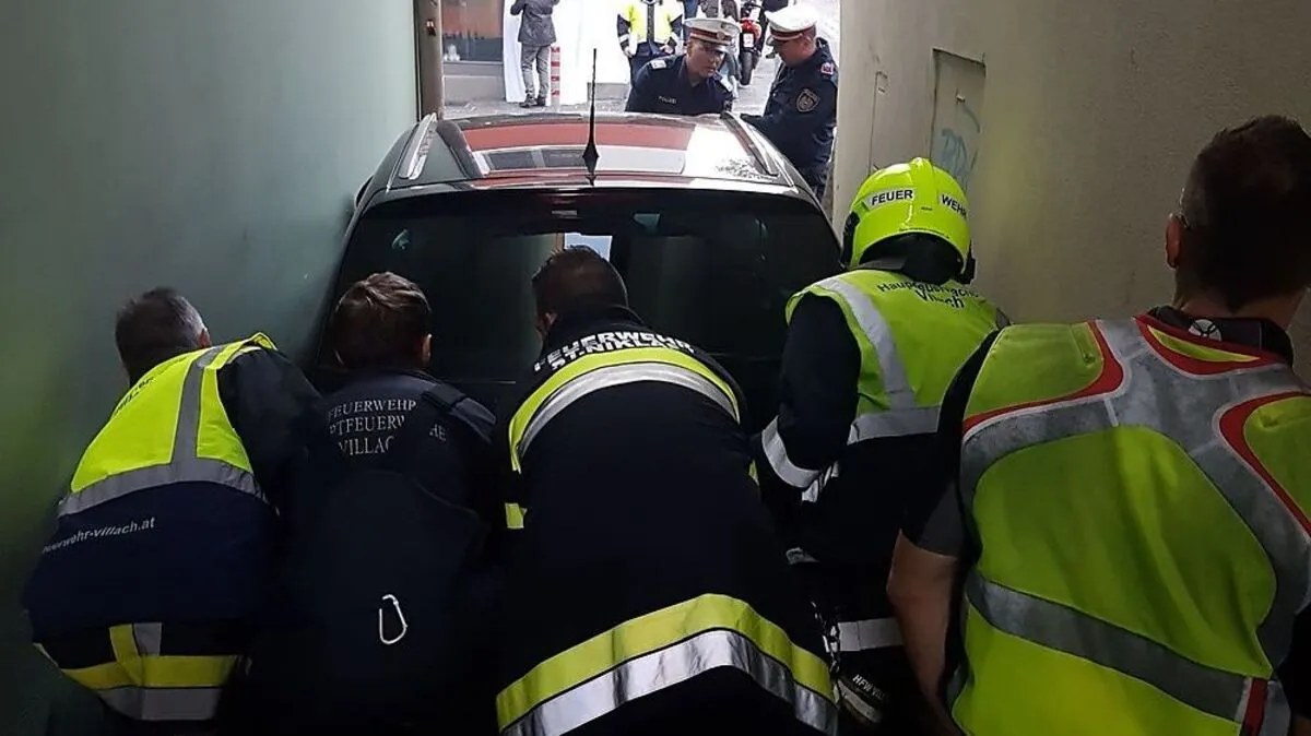 In der Kunigundengasse in der Villacher Altstadt ist am Donnerstag ein Auto steckengeblieben. Polizei und Feuerwehr befreiten es mit vereinten Kräften. Die Lenkerin hatte in die Bücherei wollen.