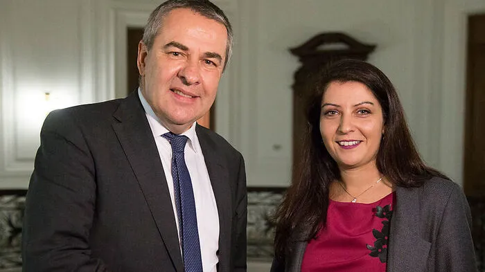 GÖD-Vorsitzender Norbert Schnedl und Staatssekretärin Muna Duzdar (SPÖ) nach Ende der 4. Runde der Beamtengehaltsverhandlungen in Wien