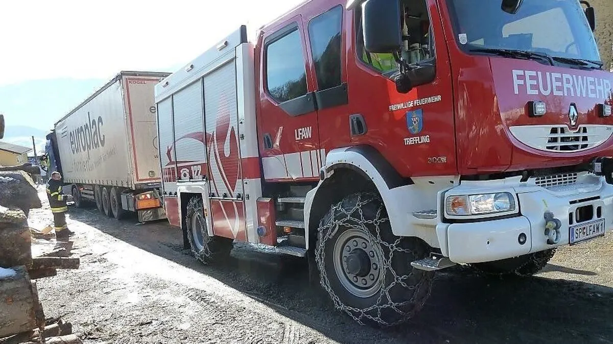 Am Mittwoch wurde die Freiwillige Feuerwehr Treffling zu einer Lkw-Bergung gerufen. Das Schwerfahrzeug kam weder vor noch zurück. Der Lkw wurde auf sicheren Untergrund gezogen.