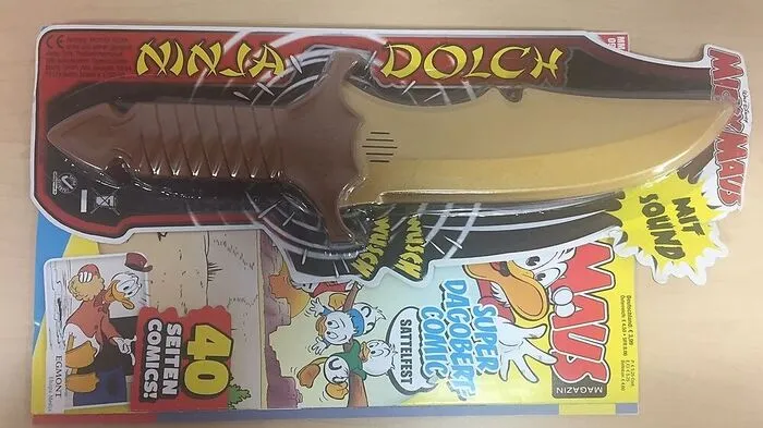Aufregung unter Eltern: Der goldene Dolch mit einer fast 17 Zentimeter langen Klinge liegt als Beilage dem aktuellen Micky-Maus-Magazin bei. "Egmont Ehapa Media bedauert, dass Spielzeug in einem falschen Kontext verstanden wird.