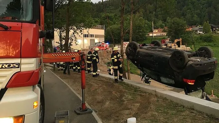 Ein Zeitungsaussteller vergaß während des Austragens die Handbremse anzuziehen. Das Auto kam daher auf der Millstätter Straße ins Rollen und stürzte über eine Mauer in den Seebach.