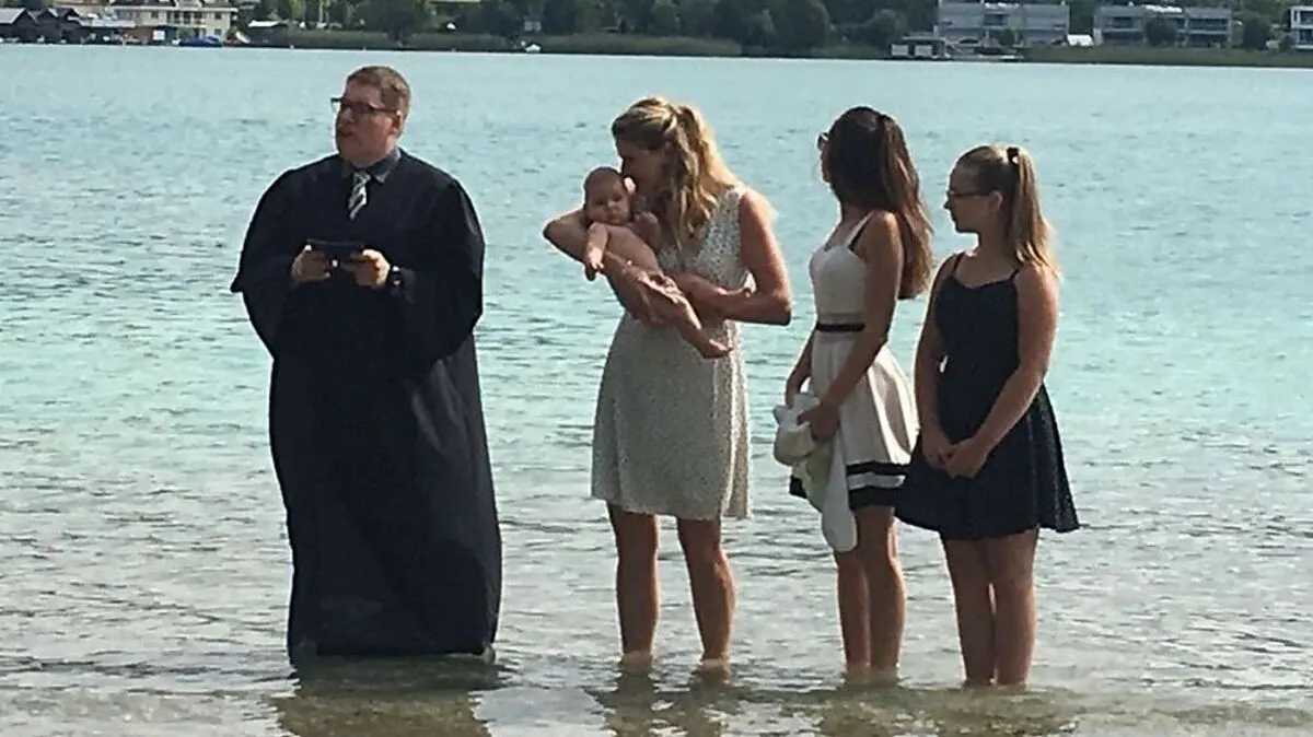 Ein Kärntner Ehepaar ließ seinen fünf Monate alten Sohn am Wochenende unter freiem Himmel im Wörthersee taufen. Für den evangelischen Diakon Johannes Gratzer war es die erste Seetaufe.
