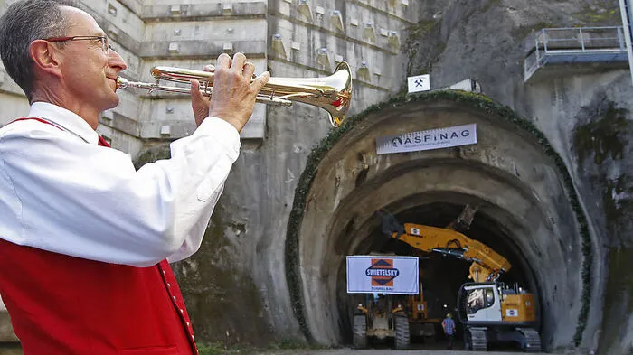 Hunderte Gäste feierten am Dienstag den Tunnelanschlag für die zweite Röhre des Karawankentunnels. Der Vollausbau inklusive Sanierung des Bestandstunnels soll Anfang 2026 abgeschlossen sein.