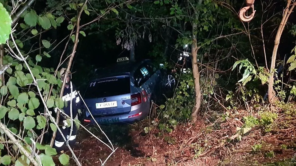 Taxi rollte mit Fahrgast davon und stürzte in Waldstück