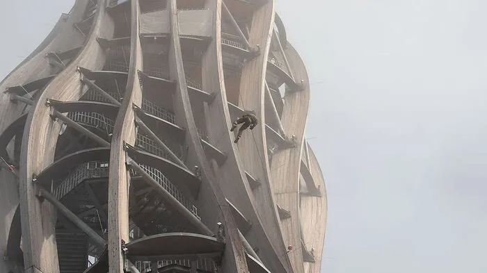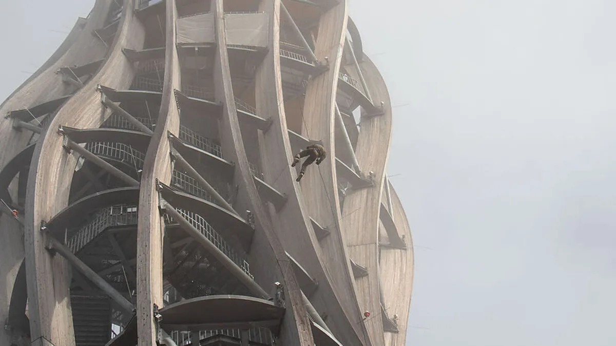 Bergen von Menschen in Extremsituationen, Abseilen aus 70 Metern Höhe, Sicherungstechniken. Das Einsatzkommando der Polizei übte auf dem Aussichtsturm für den Ernstfall.