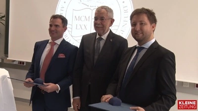 Bundespräsident verlieh am Dienstag an der Universität Klagenfurt Ehrenringe an die beiden Mathematiker Benjamin Hackl und Christian Niemetz.