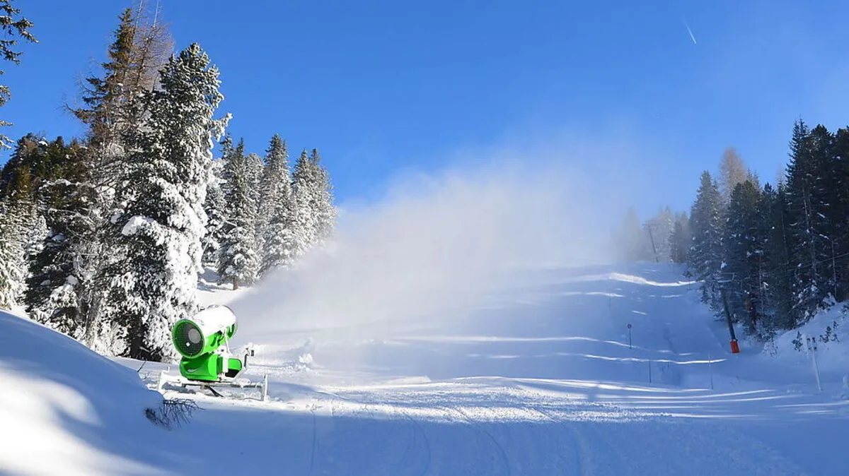 Ein Kubikmeter Kunstschnee kostet mindestens drei Euro, ohne der Investition wäre Skifahren in Kärnten aber fast unmöglich. Trotz Trockenheit sind Pisten in perfektem Zustand.