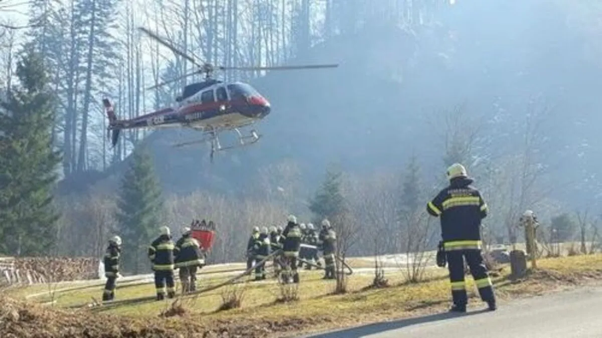 Auf einer Wiese in Ferlach brach aus unbekannter Ursache ein Feuer aus. Die Grundbesitzerin und ihr Sohn versuchten mit Wasserkübeln und einem Gartenschlauch das Feuer zu löschen. Die Flammen griffen dennoch auf ein Waldstück über.