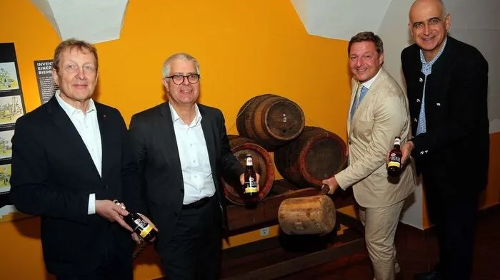 Tauchten in die Biergeschichte ein: Karpf, Santler, Albel, Overs (von links)