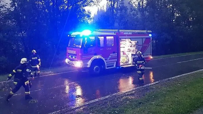 Die Kameraden der FF Wieting rückten Montagabend mit Motorsägen aus, um einen Baum zu beseitigen, der über die Görtschitztal Straße (B 92) gefallen war