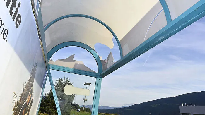 Explosion auf Spittaler Bushaltestelle: Die Detonation war so heftig, dass sogar die Seitenscheibe der Haltestellenüberdachung barst und das Dach durchschlagen wurde