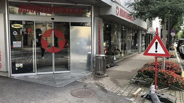 Das zerstörte Schaufenster neben dem Eingang wurde Samstagvormittag provisorisch repariert