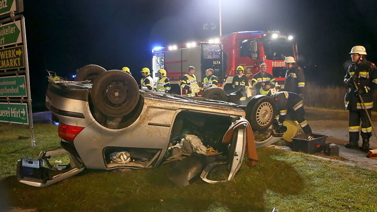 Das Fahrzeug kam bei der Abzweigung Hirt von der Fahrbahn ab, krachte gegen die Böschung und kam am Dach zum Liegen. Ein Alkotest verlief positiv.