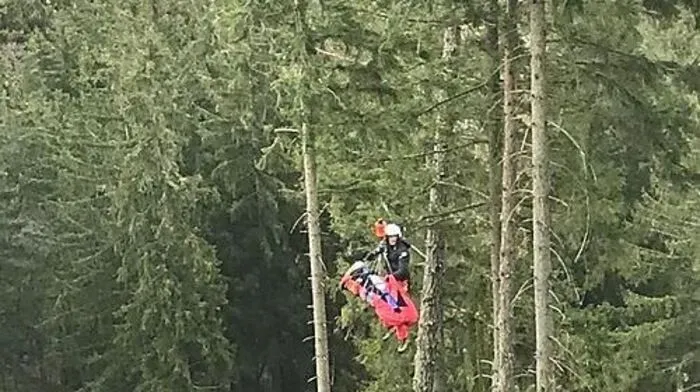 Schwerverletzter Forstarbeiter mit Seil aus Wald geborgen