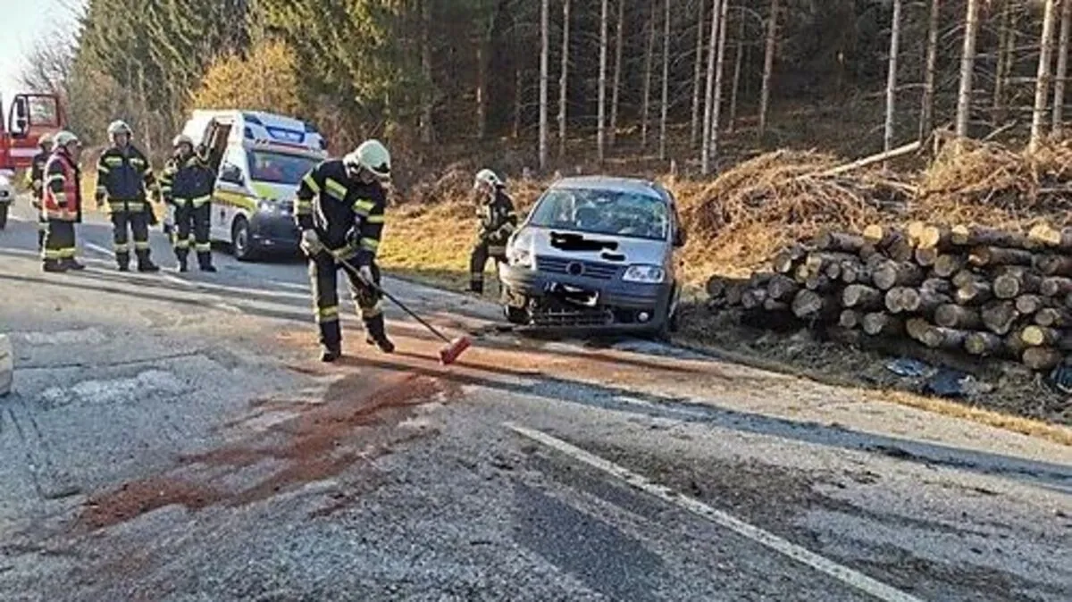 Verkehrsunfall in der Gemeinde Moosburg. 50-Jährige wurde leicht verletzt ins UKH Klagenfurt transportiert.