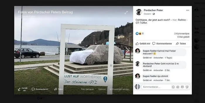 Das GTI-Treffen in Reifnitz ist für 2020 offiziell abgesagt. Der GTI-Skulptur wurde nun zum "Schutz" gegen das Coronavirus eine Schutzmaske verpasst.