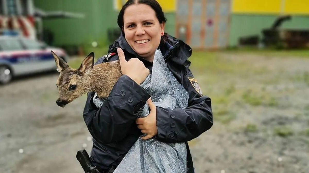 Das Wildtier hatte sich Dienstagvormittag auf einem Betriebsgelände im Bezirk Feldkirchen unter einer Betonplatte verfangen. Nachdem es befreit worden war, lief es weg und stürzte in einen Schacht.