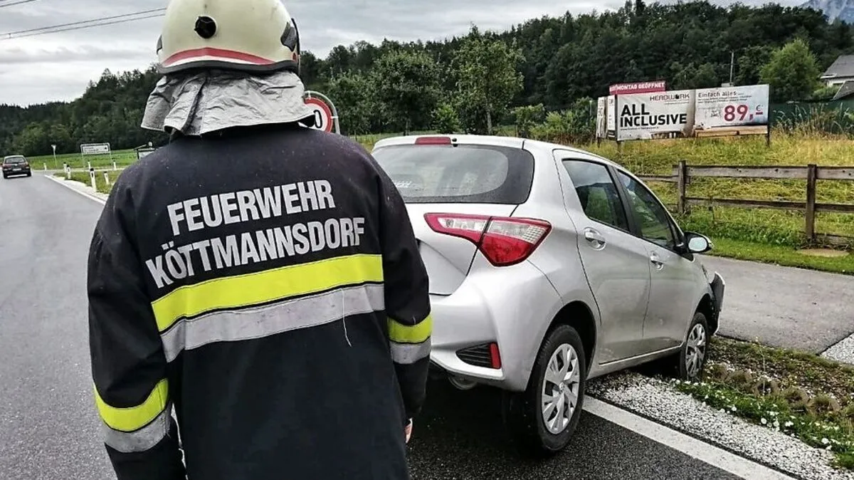 Die FF Köttmannsdorf musste einen von der Fahrbahn gerutschten PKW wieder auf selbige bringen.