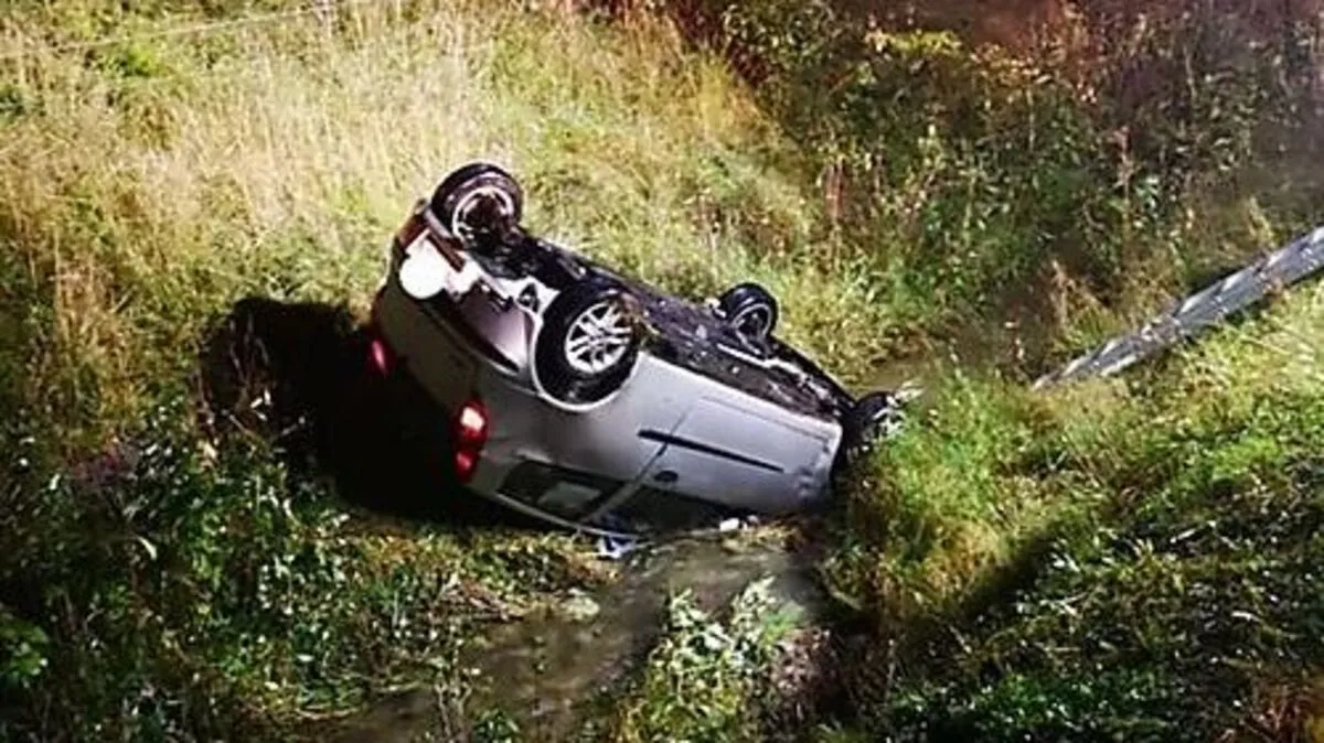 Der Lenker hatte Glück und konnte sich selbst aus seiner misslichen Lage befreien.