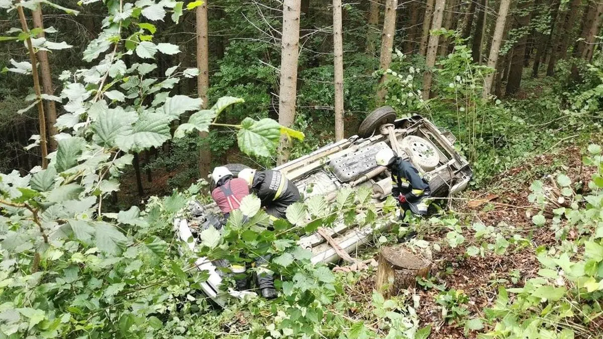 Am frühen Montagmorgen mussten drei Feuerwehren im Bezirk Völkermarkt ausrücken. Ein Mann (46) stürzte mitsamt Wagen eine Waldböschung hinunter. Ein Alkotest verlief positiv.