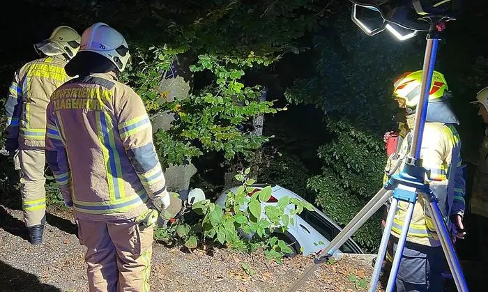 Ein spektakulärer Unfall ereignete sich am Montagabend gegen 20 Uhr in Klagenfurt-Vikring. In der Nähe des Stifts ist eine Frau (45) mit ihrem Pkw aus bislang ungeklärter Ursache von der Straße abgekommen und über eine Böschung gestürzt. "Beim Aussteigen aus dem Fahrzeug ist sie im steilen Gelände weiter abgerutscht", berichtet Wolfgang Germ, Einsatzleiter der Berufsfeuerwehr Klagenfurt, die mit sieben Helfern am Unfallort war.