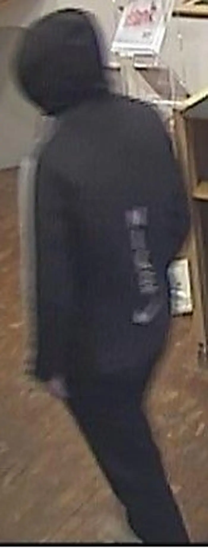 Er ist sehr schlank, war mit einer FFP2-Maske maskiert und mit einer auffälligen schwarzen Nike-Kapuzenjacke (Logo auf der rechten Brust mit Schriftzug Nike, weiße Streifen auf den Ärmeln und im Bereich des Rückens senkrecht den Schriftzug Nike und darunter das Nike Logo) bekleidet. Dazu trug er eine schwarze Hose und weiße Sneakers. Unter dem Auge hat der Mann ein auffälliges Muttermal.