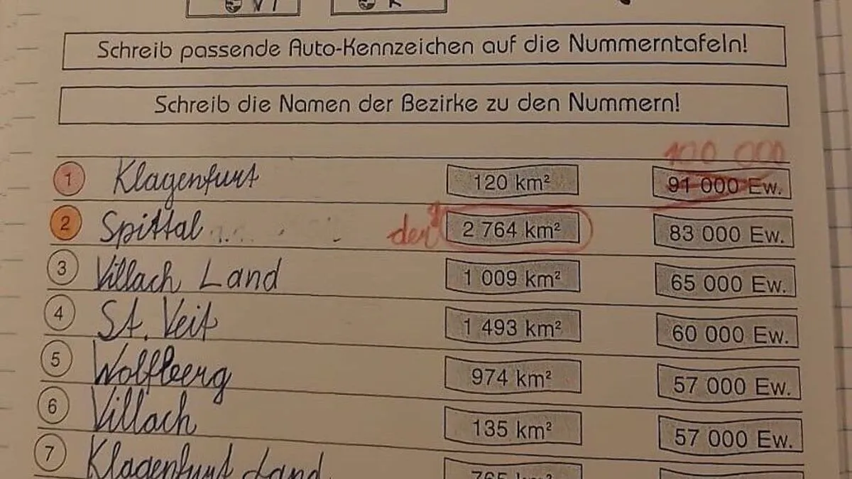 Volksschullehrerin in Klagenfurt gab im Sachunterricht Arbeitsblätter mit total veralteten Einwohnerzahlen aus, Schilling-Zeichen wurden einfach mit Euro übermalt. Eltern wandten sich an die Bildungsdirektion.