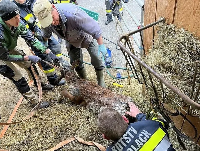 Spektakuläre Tierrettung am Sonntag in Oberkärnten: Um 8.40 Uhr wurden die Freiwilligen Feuerwehren Förolach und Hermagor alarmiert. Ein Kalb war aus unbekannter Ursache durch eine kleine Öffnung in die Güllegrube des Anwesens gefallen. Die alarmierten Feuerwehren Förolach und Hermagor konnten gemeinsam mit den Besitzern und anwesenden Landwirten das Kalb unverletzt aus der engen Öffnung befreien.