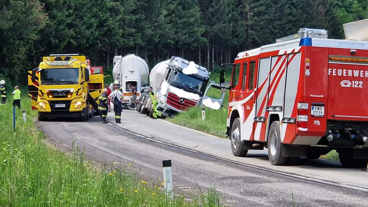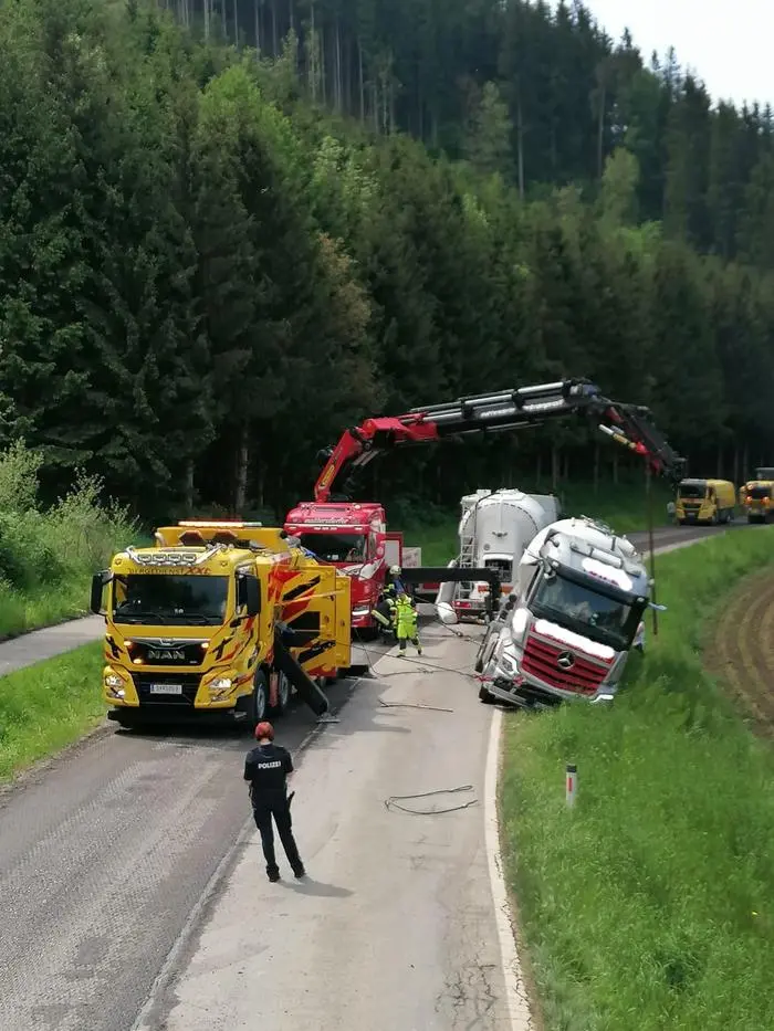 Dienstag gegen 10 Uhr drohte auf der Görtschitztal-Straße (B 92) in Wieting in der Gemeinde Klein St. Paul im Bezirk St. Veit/Glan ein Lkw umzukippen. Eine 37-jährige Kraftfahrerin aus der Slowakei kam mit ihrem Lkw samt Sattelanhänger bei einem Ausweichmanöver links von der Fahrbahn ab. Der Sattelschlepper blieb in der weichen Erde des Straßenbanketts stecken und stand kurz davor umzukippen.