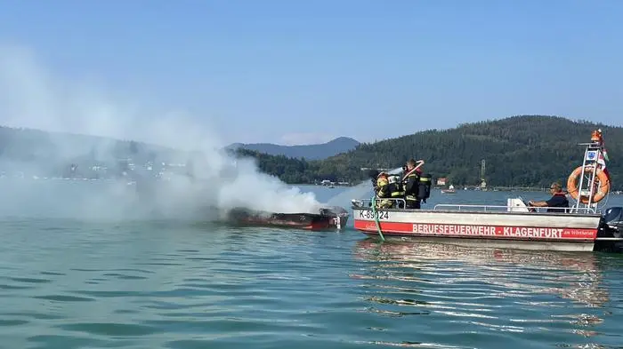 Um 16.10 Uhr wurde die Berufsfeuerwehr Klagenfurt alarmiert: Am Wörthersee stand ein Motorboot in Vollbrand. "Das Boot war mitten am See, etwa auf Höhe Strandbad Maiernigg. Die Rauchschwaden stiegen bereits hoch auf und waren von weitem sichtbar, als wir eintrafen", berichtet Wolfgang Germ von der Berufsfeuerwehr Klagenfurt.