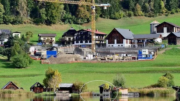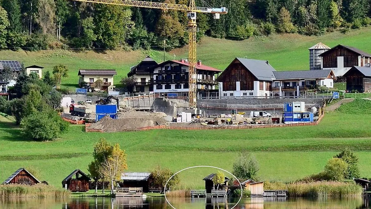 Drei Häuser werden am Westufer des Weißensees errichtet. Der Getränkeriese hat einem Einheimischen das Grundstück abgekauft, den künftigen Wohnungseigentümern steht ein exklusiver Strandabschnitt zur Verfügung.