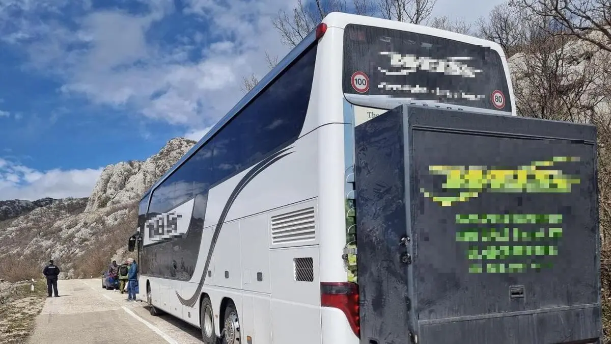 Der Bus wurde am Mittwoch in Kroatien wegen eines Sturms von der Autobahn auf eine Bergstraße abgeleitet, wo er nicht weiterkam. Die Fahrgäste warten jetzt auf die Weiterfahrt.