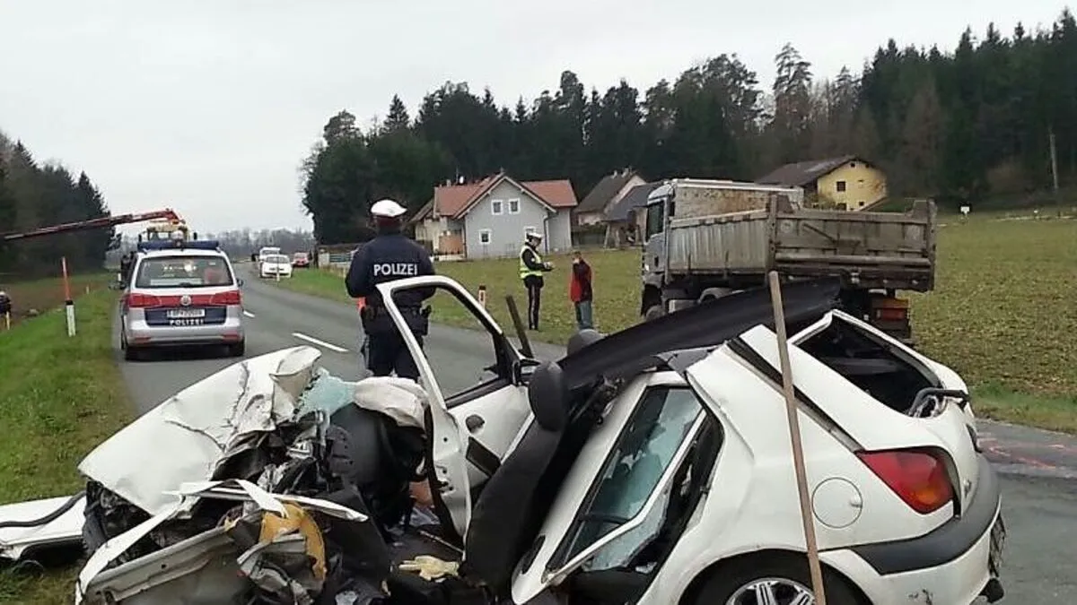 Drei Verletzte nach schwerem Unfall auf Grafensteiner Landesstraße. Pkw-Lenkerin geriet auf Gegenfahrbahn und prallte frontal gegen einen Lkw. Sie musste aus dem Auto geschnitten werden.
