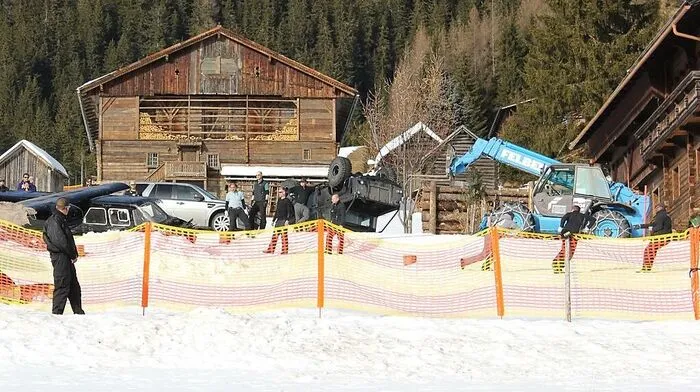 Die Actionprobearbeiten in Obertilliach haben wieder gestartet. Flugzeugteile werden per Hand in Position gebracht. Nächste Woche werden die Sicherheitsvorkehrungen verstärkt.